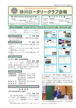 会報第2621号(2025/11/05) 会報 2025.11.13 会報第2621号(2025/11/05) 会員卓話 「2025-2026年度 地区大会報告」 湯浅克己副会長 クリックすると表示されます。↓ 2621.pdf
