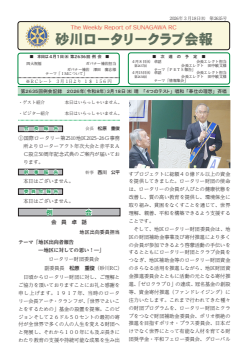 会報第2635号(2026/03/18) 会報 2026.03.30 会報第2635号(2026/03/18) 「地区出向者報告-地区に対しての思い-」 ロータリー財団委員会 副委員長 松原重俊(砂川RC) クリックすると表示されます。↓ 2635.pdf